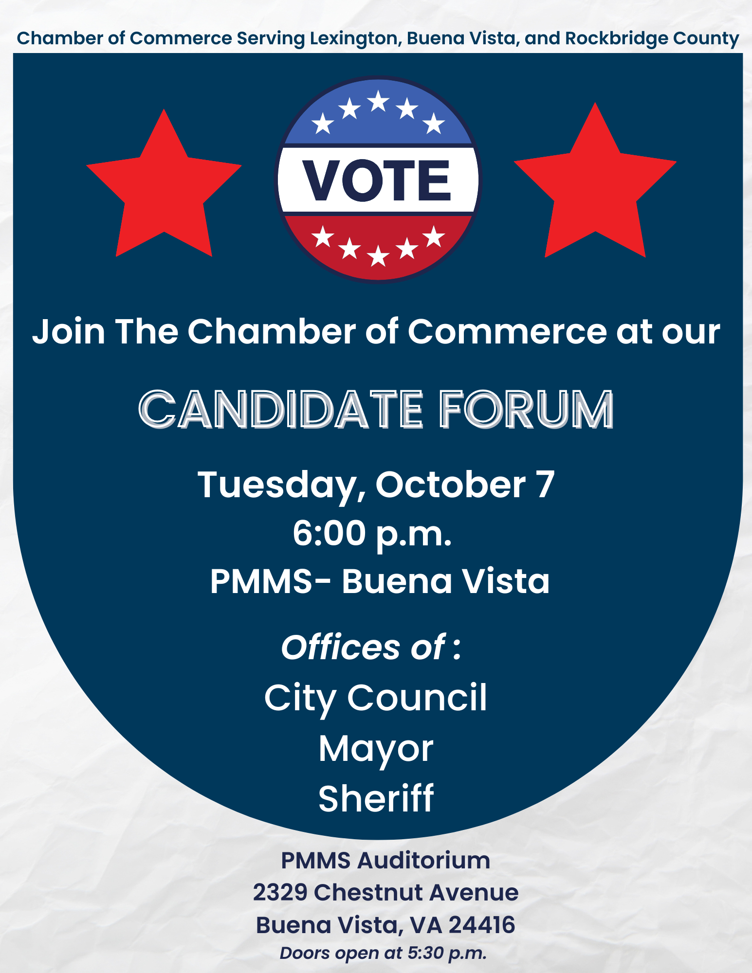 Join us October 7, 2025, 6pm at the Parry McCluer Middle School auditorium for a Candidate Forum to hear the candidates running for the offices of; City Council, Mayor, and Sherriff.