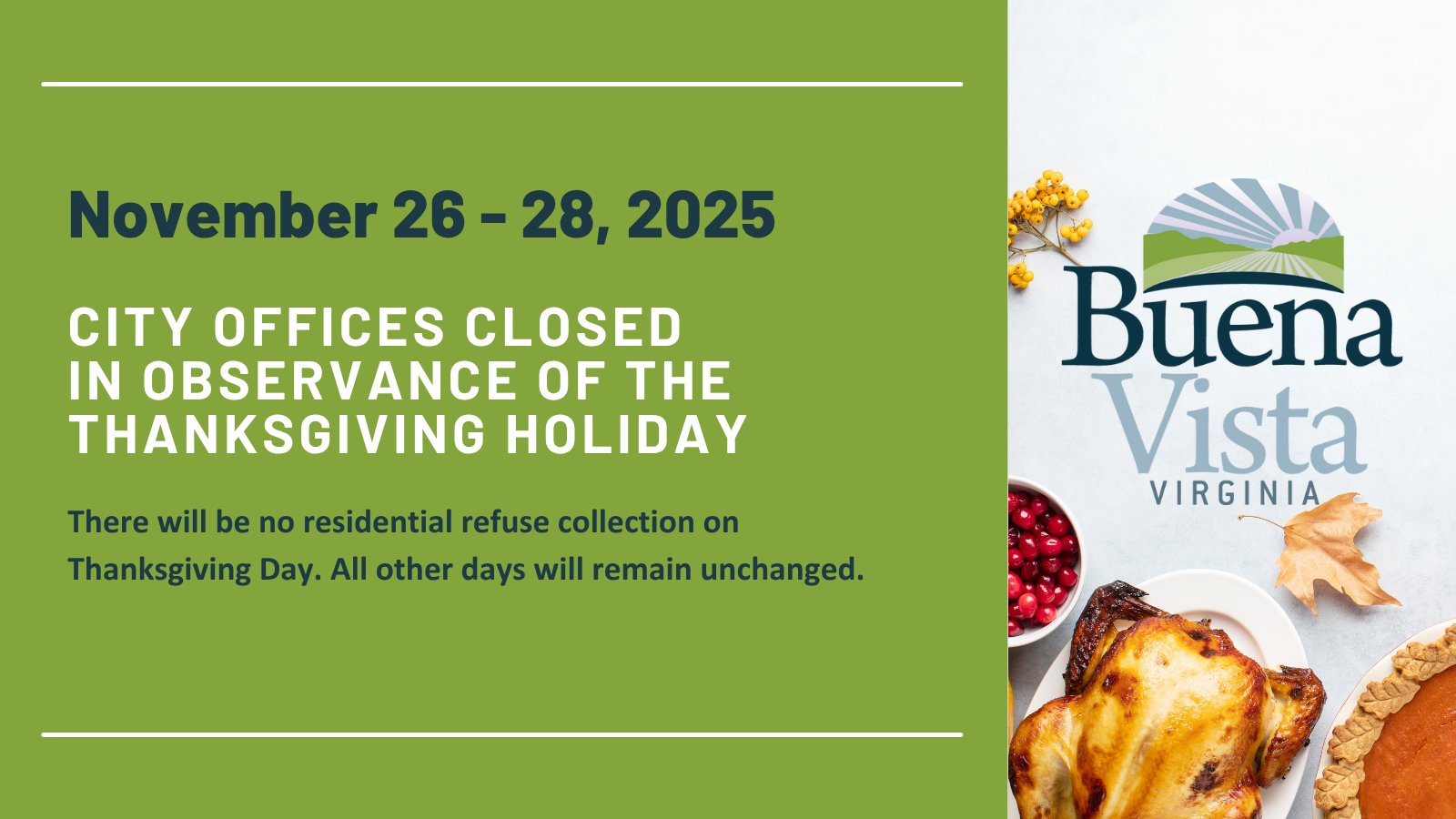 DECEMBER 2025 UPDATE: Due to the holiday season, the December 4, 2025 meeting has been moved to December 11, 2025 at 6:00pm. The December 23, 2025 meeting has been cancelled. Regular council sessions will resume in January 2026. Members of the Buena Vista City Council meet in Council Chambers, 2039 Sycamore Avenue, at 6:00 p.m. on the first and third ... Read More